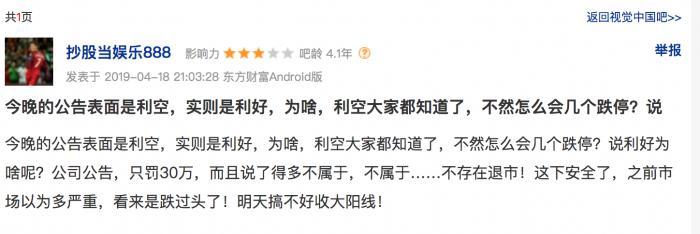 “利空出尽”、“处罚对公司经营没有影响”、“没有退市风险”成为众多投资者将“处罚”解读为“利好”的重要原因。